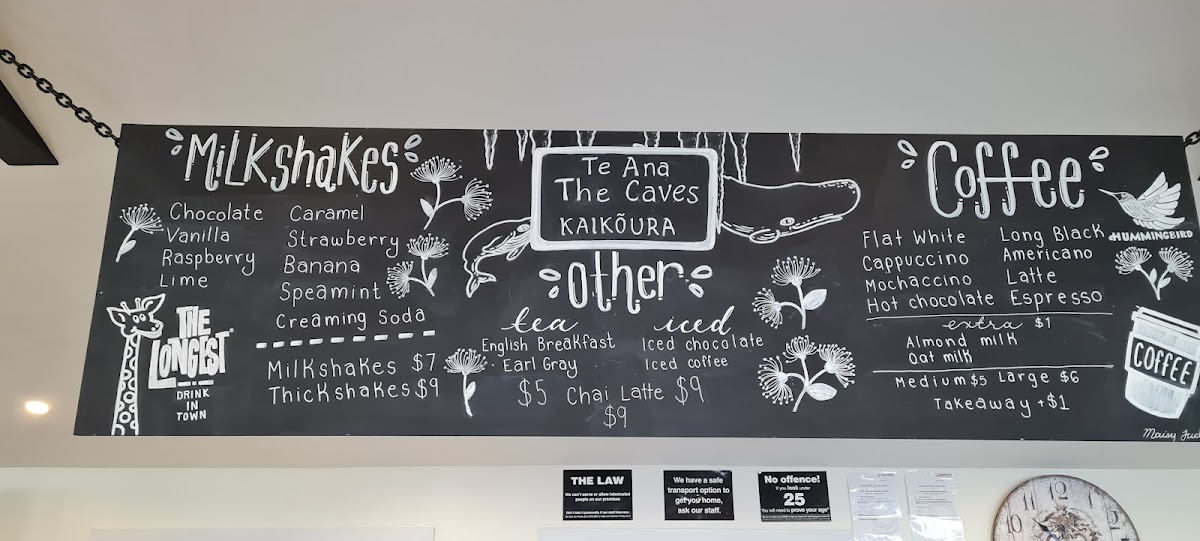Welcome to The Caves Kaikoura Cafe, an inviting dining destination located at 92 State Highway 1, Kaikoura Flat. This cafe stands out for its diverse menu, which caters to all palates. Start your meal with the Garlic Ciabatta topped with Parmesan Cheese, a warm and flavorful choice at NZ$12.50, or savor the Seafood Cocktail, rich in homemade dressing for NZ$18.50.